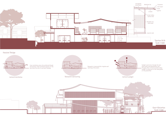 As the site is located at the central point between four nodes- school, recreational park, commercial shops and residential area, it has attracted different demographics to the site, for instance, adults who go to the market to purchase groceries, elderlies who chill around the food court, vendors who open up their stalls at the market, students who linger around the market after their school time or extracurricular activities and children who play around the park at the back of the market. To me, what makes a market a place for community is the interaction between different people that creates the communal feeling and depicts the close-knitted community. Thus, the design intention of "Weaving" came about. The idea behind "weaving" is to encourage and weave the interaction between different demographics and to connect different site elements into the market.